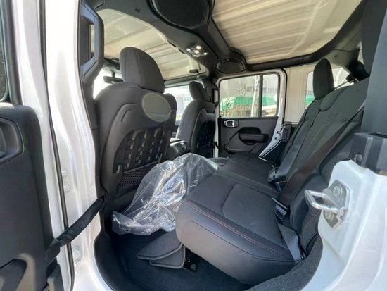 2023款牧马人后排腿部空间很宽敞,后排头枕比较长,座椅支撑性比较好,还配备了后排杯架、 后排出风口,天津恒泰汽车销售有限公司,牧马人后备箱空间也很宽敞,采用侧开门式,后风挡则采用掀背式开启模式。