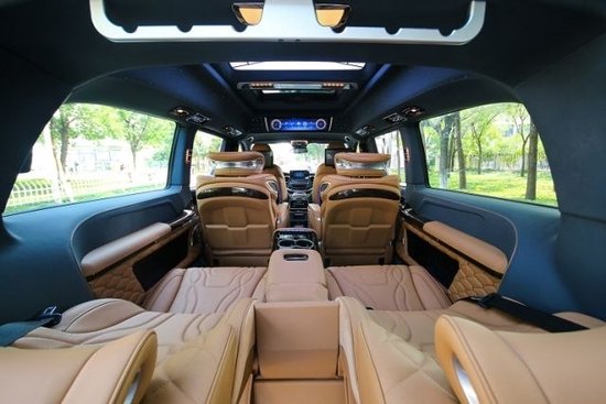 22款奔驰V250L隐藏六座系列后排座椅为总裁沙发座椅(根据人体工程学设计)一键式展开一键收回(记忆功能)自动找到最舒适的角度,舒适度和随意性更强,双侧壁设计集成丰富配置,多媒体触摸屏、商务桌板、多媒体接口、压缩机车载冰箱等办公、娱乐设备给您带来充足乘坐享受,精湛工艺可靠品质树立威霆 (配置|询价)商务房车新典范。