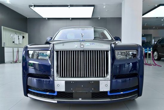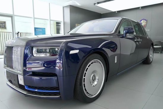午夜蓝全新款劳斯莱斯幻影是结实耐用和感性化的代表作。长达6m的车身,底盘重量只有550kg,又是一个惊人的数字。