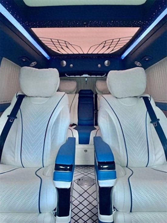 2021款奔驰威霆改装高顶商务,两个独立的座椅采用欧洲进口Nappa小牛皮手工缝制,严格按照人体工程学设计,内置座椅加热、通风、按摩、四段八向调节、180°旋转、座椅记忆、腿拖支撑,乘坐感受非常舒适。