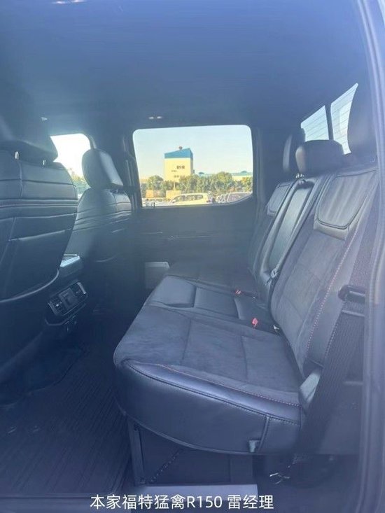 车辆内部同样采用宽大的布局方式,但在猛禽版的基础上加入了猛禽R的点缀,拥有黑色皮质、Alcantara和碳纤维材质装饰,提升性能和豪华感。可放倒的档杆、可翻折的工作台等亮点配置同样具备。