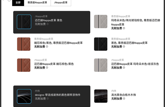 内饰更换Nappa皮革配色或是饰件纹理都无需另外付费,好评!
