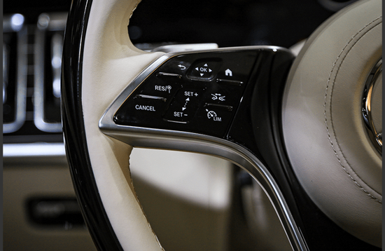 和蜻蜓造型方向盘相比,个人更喜欢这款鸥翼造型方向盘,它看起来精致轻盈,和迈巴赫S级的气质更搭。方向盘内圈为真皮,外圈为木饰,二者浑然一体。