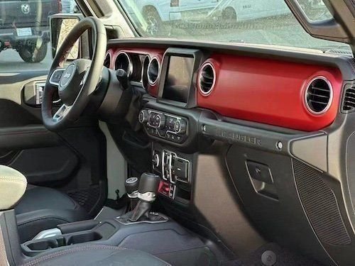 全新23款吉普牧马人的内饰更加精致,中控台配有大尺寸中控屏,集成了空调、多媒体、GPS导航以及座椅加热控制等功能。此外,该车采用了第四代Uconnect 8.4+7双液晶人机交互系统,这一系统突破性集成了Apple Car Play和Google Android Auto,令整车科技感进一步提升。总体设计都是以张扬个性为主,别具一格的中控台搭配可爱的复古小按钮,使得整个驾驶舱都很有风格,而且操作也非常的方便。