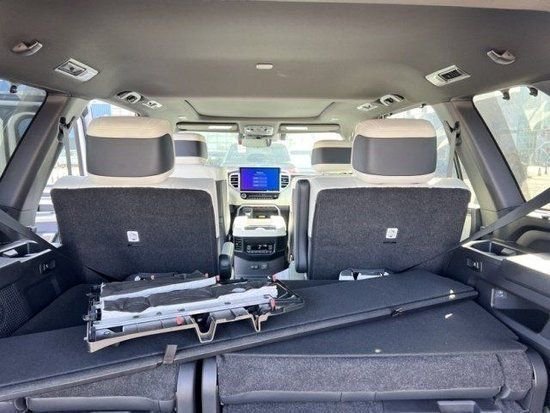 23款丰田红杉 配置:3.5TT V6 混合动力、437匹马力、790牛米、10速手自一体变速箱、适时四驱系统、双速分动箱、自动限滑差速器 配置:7座、全景天窗、22寸铝合金轮毂、前排座椅通风 加热、14扬声器JBL高级音响、Softwx装饰双拼色座椅、360环车影像、抬头显示、蜂窝式金属镀铬中网、LED大灯、日间行车灯、LED雾灯、120V/400W后座电源插座、三区空调、方向盘加热、14英寸中控大屏、五种驾驶模式➕选配:电动侧镜 后底盘升降 四季脚垫