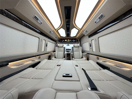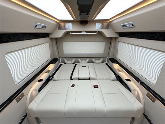 丰田海狮的航空座椅有着超乎寻常的尊贵感和舒适感,侧壁更换意大利顶级真皮包袱手感极佳,侧壁菱形格的设计使整车层次分明立体感更强。侧窗豪华电动窗帘,面料阻燃隔热、隔光、隔音。顶棚更换意大利顶级麂皮绒零污染零伤害的环保材质,搭配桃木件及氛围灯的组合,营造出温馨舒适的乘车环境。