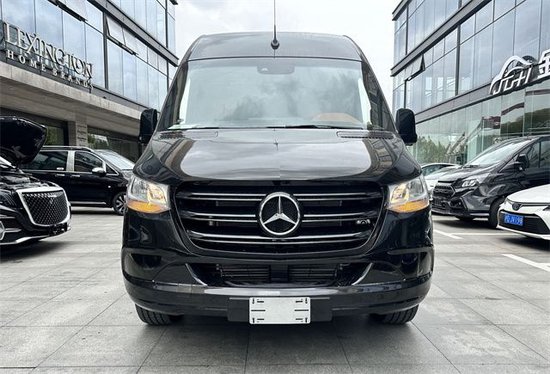 全黑色系的,外观三叉星辉的奔驰大标位于前脸正中央,最新国六车型,全国可任意上牌。这种斯宾特车型主要适用于公司的商务接待,或者是大佬日常出行的高品质生活。外观奔驰的大标就足以彰显他的身份。