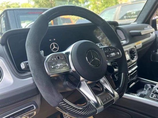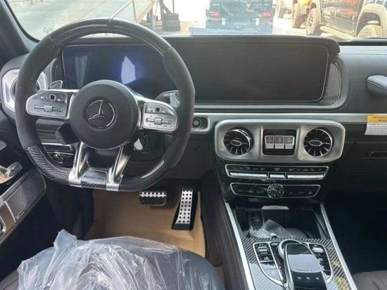 23款奔驰G63豪华精致的真皮包覆提供了足够的舒适性和支撑性,通风和加热功能让乘客免受高温和寒冷的煎熬。中控台多处均采用碳纤维材料覆盖,带彩色TFT显示屏的AMG仪表盘、AMG主菜单和单独的挡位显示器以及采用白色照明的AMG门槛。名贵的选材及精湛的内装令人拍案叫绝。