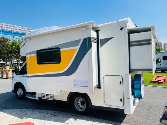 车辆户外配置方面,尾部贯通仓和储物仓增加了很多储物空间,房车专用户外抽拉燃油灶方便了户外烹饪,还有房车专用遮阳棚+LED灯带,享受露营无忧。