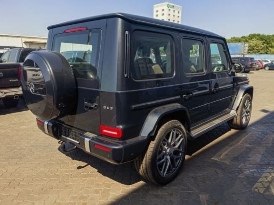全新23款奔驰AMG G63它硬朗的方盒子造型,没有多余的弧度、没有任何曲线,眼光所及满是平直锋利的线条,就连车顶上的导雨沟槽,也是沿着车顶周围一圈,分外焊接上去的金属槽,车门搭钮更是绝不虚心,硬挺挺地屹立在门缝之外,外凸的轮拱、造型如同 梯形的引擎盖。