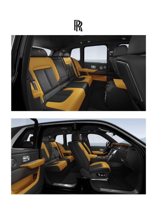 进入劳斯莱斯库里南车内,黑色调为主,副驾驶区域,有一块钢琴烤漆区域,而在中控上沿突出的区域用黄色进行点缀,当然不同的车主,如果有需求,可以去定制自己喜欢的颜色。空调出风口是圆形方案,中控屏幕不算大,尺寸在10.25英寸,没有提供车联网和手机互联等功能,对于追求智能体验的朋友来讲,会稍微有一些遗憾。