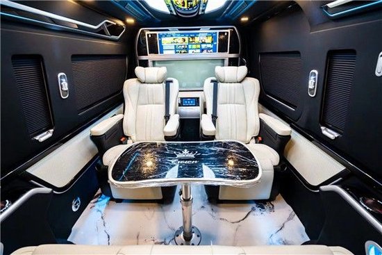 丰田海狮华通丰业乘客舱配备了可360旋转的首长级航空座椅,拥有通风,加热,腰托等等功能,旋转过去之后再配备高档的办公桌版,提供了一个很好的娱乐空间或会议空间。充分体现了其人性化的设计以及对于乘车人员舒适度的考虑。