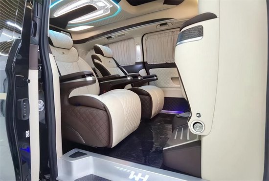 首先外观方面,原来是简单的格栅,现在换成了跟V级同款锋利式的进气格栅,黑体实心的车标更显尊贵感。下方是左右贯穿的镀铬件以及雾灯,加上后期加装的高顶设计,整体线条更加饱满流畅,车内的空间感也更加好。奔驰威霆改装7座高顶商务车,秉承了梅赛德斯-奔驰百年的优良传统 外在造型精致典雅 优美中透着奢华!