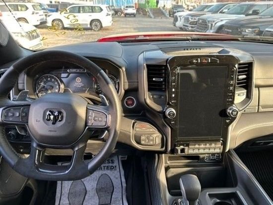全新2023款道奇霸王龙传承了道奇Ram家族高大威猛的造型设计,同时细节部分融入了更多高性能元素,包括经过黑化处理的前格栅,引擎盖两侧的黑色进气口,以及为了容纳巨大的机械增压器而设计的通风口,前倾式车头,相较中规中矩的家族设计无疑多了几分对路面的侵袭感。车内氛围堪称豪华,绝对可以媲美高级轿车。眼神中没有透露出一丝的活泼神韵,唯一展现出来的只有凶狠。前杠是铁质前杠带拖钩,散发这金属气息,沉稳大气。