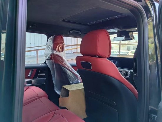 23款韩版G63高配 黑/红 配置:独家内饰包(菱形格座椅加热通风按摩) GT 按钮 22寸轮毂 参数:4.0T双涡轮 V8、585匹马力、9速手自一体变速箱、四驱系统 标配:胎压监测、可变悬挂、雷达测距、前后电眼、360环影、滑动天窗、AMG运动外观套件、一键启动、踏板、电动真皮多功能方向盘带记忆、换挡拨片、全液晶仪表盘、主副驾驶电动座椅带记忆、前后座椅加热、柏林之声音响、几何多光束LED大灯、64色氛围灯、大灯清洗、电动折叠加热后视镜、感应雨刷、并道辅助、车道偏离预警、