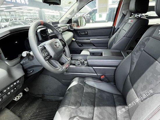 23款 丰田红杉3.5T 混动 TRD Pro 横向行李架 18寸轮毂,前排无钥匙进入/一键启动,电动加热、折叠、盲点、驾驶侧防炫目、倒车向下调节后视镜,LED雾灯、LED流水尾灯,高级自动熏黑LED流水大灯、LED日行灯、自动调节高低,前排座椅加热、通风,驾驶侧座椅记忆,数显防炫目后视镜,环影,无线充电,双层隔音前档,手动2排/3排遮阳帘,全景天窗,方向盘加热,14寸触摸屏/JBL14扬声器,雷测,带转向辅助车道偏离警报,车道跟踪辅助,防碰撞辅助,道路交通标志辅助,自动远进光灯,全尺寸备胎,多地形监测显示-前、侧、后,多地形选择-爬行模式、下坡辅助 5286*2027*1974 3.5T 443马力 V6 7座