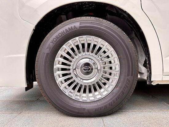 外侧的轮毂用的是16寸的,换的是多幅的锻造轮毂,轮毂款式可以更换。底盘是前麦逊独支柱带螺旋弹簧和稳定杆,后整体叶片弹簧悬架。可以额外选装空气悬挂。单侧开门,右边也是电动滑门。