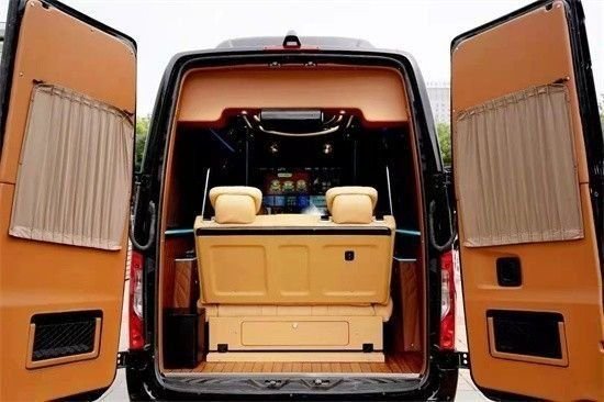 二排座椅是两个独立的航空座椅,舒适度自不必说,三排座椅是宽大舒适的三联排沙发床,车载冰箱、车载窗帘、空气净化器、咖啡机等均可配备。对于奔驰斯宾特你怎么看呢?
