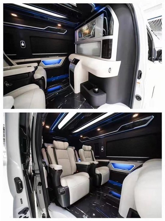 细看整个车内的空间,顶部的灯光设计以及星星的点缀,外加氛围灯光的组成,全部采用的是开模具制作,包括周边门板上的配件搭配以及窗帘的装饰,提升高级感的同时,又不会显得过于繁琐。一眼看过去,同级别中很突出。