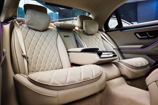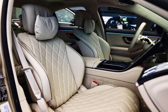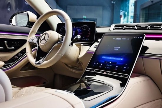 2023款奔驰S500的内饰设计就像一座移动的总统套房,相当的豪华。中控部分搭载了双屏设计,12.8英寸的中控大屏以及12.3英寸的悬浮式行车电脑屏,配上米色的内饰设计,颜值感很出众。此外,车内还使用了HUD投影显示以及高亮的钢琴烤漆面板,将科技感与时尚感结合得相当到位。