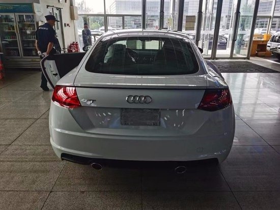 奥迪TT外观方面,整体延续了TT RS系列家族式力量型的轮廓造型。前脸熏黑的中网搭配獠牙式的LED日间行车灯,还有延续至前脸中网且有一定弧度的发动机盖板,整个前脸造型营造出一种蓄势待发的俯冲感。当然,与众不同的地方还得看黑色的品牌LOGO,它算是整个前脸的点睛之笔