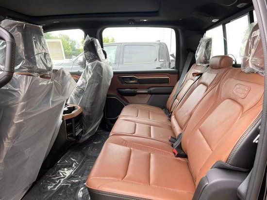 全新道奇公羊长角号在你打开车门的一瞬间,你就能够感受到这款皮卡的豪华感扑面而来,肉眼能够看到的地方几乎全是皮革材质,仪表板、车门把手、门饰板都是百分百全粒面皮革。对于座椅还是有些许不同,座椅表面还镶嵌有鳄鱼浮雕图案,手套箱以及中控台等处也均有这样的铭牌标记,时刻提醒你这款皮卡身份的高贵。此外,一些细节点缀均采用镀镍的形式,并且为了与长角号这个名称更为贴切,车内多处采用了实木材质