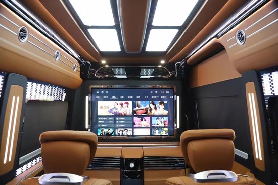 家人出行,后排对坐的一个布局可以当成会客厅、娱乐厅,多功能可以使用,满足不同的场景需求,还能当成休息室来使用,整车内部加装了低音炮以及阿尔派的音响,坐在车内视听感受非常带劲。