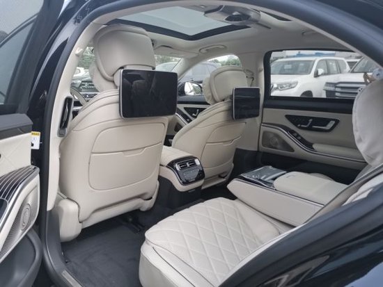23款奔驰S580它的前脸相比现款车型发生了很明显的改变,全新奔驰S级 (配置|询价)的前脸轮廓显得更饱满,新车的进气格栅采用了多边形造型,进气格栅上继续采用三条横向的镀铬条和一条纵向的镀铬条装饰,它的进气格栅造型看上去比现款车型更饱满大气。