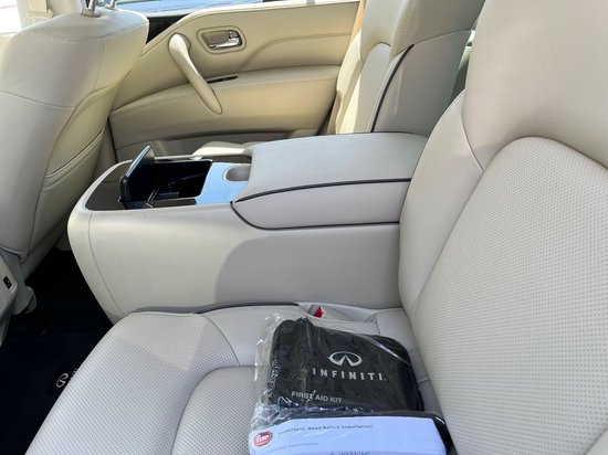 配置:23款美规英菲尼迪 QX80 配置:5.6L V8 400匹 562扭矩、20轮、 LED大灯、电动天窗、行李架、电动折叠后视镜带加热、前排座椅加热带记忆、第三排座椅电动调节、真皮方形盘加热、电尾门、带行人检测的前向紧急制动、智能巡航控制、具有车道偏离预防功能的盲点干预® 、无线 Apple CarPlay® 集成、英菲尼迪全模式® 4WD、最大拖车:3.8吨、12.3寸中控大屏、BOSE音响、远光灯辅助、防碰撞预警、紧急制动
