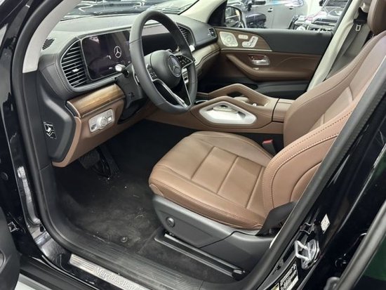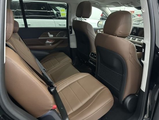 在内饰方面,24款奔驰GLS450基本延续了现款车型的布局风格,不过在细节方面进行了调整,左侧换装了全新皮革材质包裹的三幅式多功能方向盘,前方是由液晶仪表盘和中控显示屏组成的超大一体式显示屏,并新增“实时越野路面影像”功能和新MBUX智能人机交互系统,科技感十足。用料方面新车运用了大量的软性材质覆盖,并有木纹装饰以及缝线点缀。