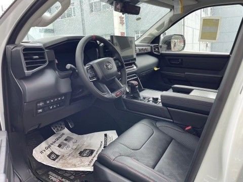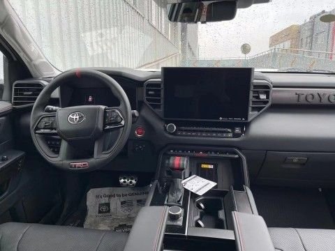 23款丰田红杉TRD Pro车内采用了大量软质材料包裹,部分区域还加入了缝线处理,显得档次感和质感十足。另外车内采用的是四辐式多功能方向盘,并保留了很多物理按键,足以满足驾驶时想要的操控感,车内的科技氛围是通过12.3英寸的全液晶仪表盘和14英寸的中控屏来实现的,中控屏两侧的空调出风口,虽然没有采用时下流行的贯通式设计,但在中控台上对称排列也别有一番风味。另外顶配Capstone车型的内饰将会采用更加豪华的黑白配色方案,并搭配胡桃木装饰面板。