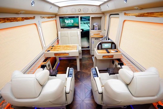 丰田考斯特改装商务车车身全长7005mm,车身宽度2040mm,车身全高度2631mm,高大端庄的外形设计在给您带来舒适的坐乘空间的同时也在显示了高大上的设计并且合理的曲线设计。丰田考斯特奢华版秀外慧中,车内布局个性化设计,宽敞舒适,内饰采用欧洲流行设计。东方众威原创丰田考斯特改装商务车配备了全桃木材质的办公桌和全桃木外饰的4L冰箱,车为私密玻璃在配上吸顶式空气净化器,即便是在密闭的车内也能呼吸到新鲜的空气,使您乘坐时身心愉快。