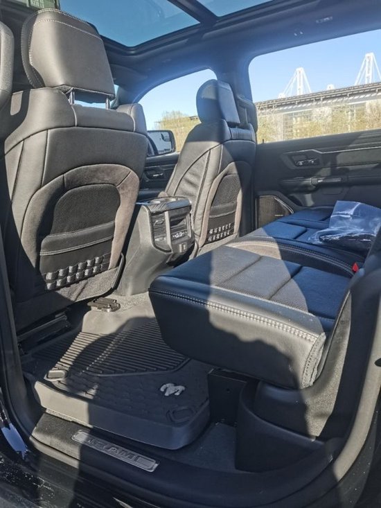 道奇公羊霸王龙内饰部分进一步强化了其高性能版本的形象,中控台和座椅随处可见的TRX标识便是最好的例证。同时,作为道奇家族的旗舰车型,新车还配备了12英寸竖置中控屏幕,除了支持蓝牙、导航和车载Wi-Fi等常见功能,还支持Apple CarPlay和Android Auto手机映射。