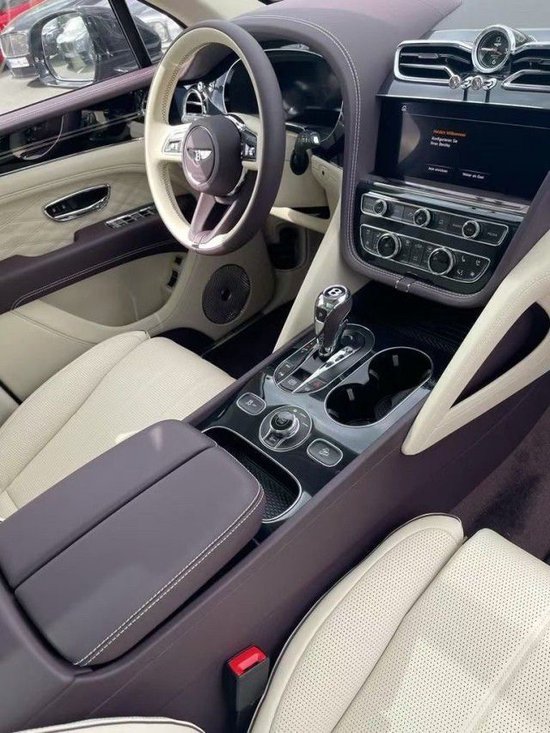 23款宾利添越中控屏幕上方的空调出风口变成了飞翼式造型,再与中间的百年灵钟表相融合,宛如意化后的宾利车标,设计十分巧妙,多功能方向盘进行提升,并升级了12.3英寸全液晶仪表和10.9英寸中控屏幕。这块屏幕拥有防反射和防眩光图层,支持CarPlay和Android Auto互联,科技感紧随当下。标配宾利专属音响拥有590瓦、共十二扬声器,并可选装1780瓦的Naim for Bentley音响系统,拥有二十扬声器,包括内置于前排座椅的两个有源低音扬声器(active bass speaker),以及分别置于驾驶舱前部和中部的超高音扬声器(Super-Tweeters),
