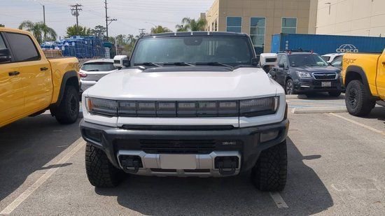23款悍马EV 皮卡前大灯组和格栅融为一体,并嵌入了“HUMMER”的英文标识,通过贯穿式LED日间行车灯点缀,增强新车的科幻感。下方的前包围硕大敦厚,粗壮的“铠甲式“护板营造出一种坚固硬派的视觉效果,同时也带来了出色的通过性。