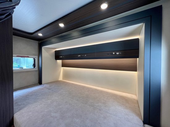 厨房区配备有便携式米家智能电磁炉、松下微波炉和多个储物柜,可在室内做点简餐,也可与室外厨房配合使用,享受露营野餐的乐趣。当然出门旅行的时候也可以自带充足的食材和饮品,152L的塞特福德冰箱完全放得下,冷藏冷冻均可。其他配置方面,配有房车智能控制系统、三菱重工1.5P静音变频投影面板空调、4路监控,32寸电视(车头翻转)、进口卡洛西行车冷暖风机、行车冷暖风+驻车燃油燃油暖风系统等。