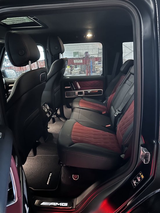 前座椅舒适包(电控舒适控制,真皮包裹把手,多轮廓座椅,前排座椅按摩),G级 (配置|询价)工厂独家内饰定制包(菱形格缝线座椅,车门,尾门,副驾驶扶手G级工厂标识),GT弹射起步组件销售经理:张女士 18502224231 微信同步、149hp解除限速,翻毛皮顶棚,碳纤维内饰、碳纤维方向盘,熏黑AMG22轮红卡钳,后排娱乐(在后备箱未安装)