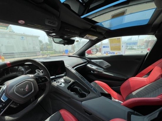 23款科尔维特C8敞篷 内饰部分采用了环抱式中控设计,中控台几乎将所有的控制按键和旋钮放置在了驾驶员右侧的面板上,并且全部朝向驾驶位置。此外,新车采用全液晶仪表盘与中控多媒体显示屏的连屏设计