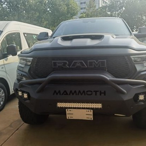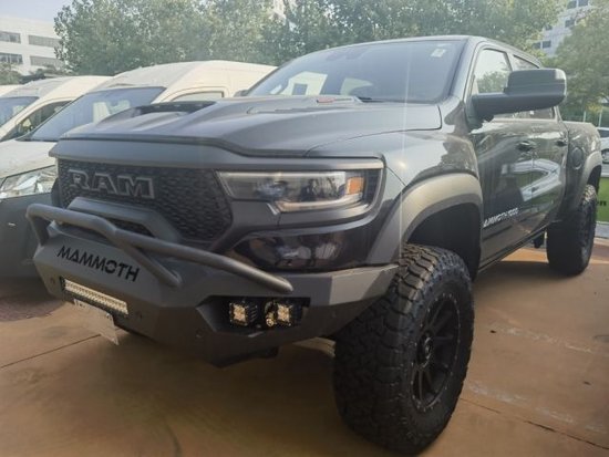 道奇猛犸象进行了升高处理,采用定制的竞技前杠、配以20英寸防脱越野轮毂和35英寸的越野轮胎。动力搭载经过升级的6.2L机械增压发动机,最大可输出754kW,峰值扭矩1313N·m。