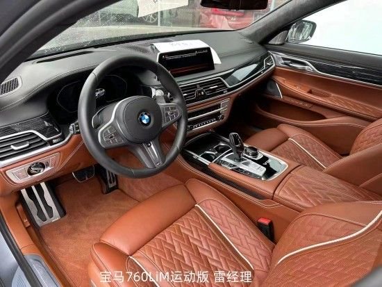 2021款宝马M760Li xDrive V12 运动套装和2021款宝马M760Li xDrive V12 豪华套装内饰方面:专属为Alcantara墨灰色车顶棚。只要是M运动套装车型,真皮方向盘均为M运动样式,要是想彰显高端商务气息,那请选择木质镶嵌工艺的方向盘。购车热线:187-0156-6306 雷经理 (同微信)