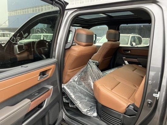 详细配置:全液晶仪表盘,前独立悬挂,后五连杆悬挂,高级拖车系统,400W(120V)电源插座,数码后视镜,自动空调,方向盘加热,电动方向盘,抬头显示,隐私玻璃,电动后窗,环境照明,前后排座椅通风加热,主驾驶记忆,主驾驶10项电动,副驾驶8项电动,4项前排腰部支撑,雨量感应雨刷,外后视镜加热记忆电动防眩目,LED日间行车灯,LED雾灯,顶级三光束LED大灯,自动调平大灯,高级LED尾灯,全景天窗,122L大油箱,坡道辅助,三种驾驶模式选择,拖车制动控制,20寸熏黑轮毂,无线充电,Apple CarPlay,Android Auto,14寸中控大屏幕,12个扬声器JBL高级音响,电子刹车,发动机主动降噪技术,盲点监测,自动驻车停车辅助,电子制动力分配,制动辅助,防抱死制动系统,车身稳定,智能停止技术,牵引力控制,行人监测制动功能,自动远光灯,车道追踪辅助,动态雷达巡航控制(ACC),紧急转向辅助预碰撞系统,摇摆警告,胎压监测