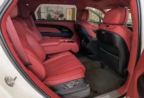 2023款宾利添越加长版 宝石黑/热刺红&黑鲸 木饰:黑钢琴木、选配配置:流光菱形格套件、3幅式双色加热真皮镶边方向盘、宾利徽章座椅刺绣、黑钢琴木、22寸5幅定向喷漆轮毂、4+1舒适座椅。