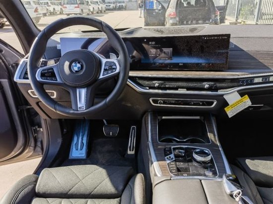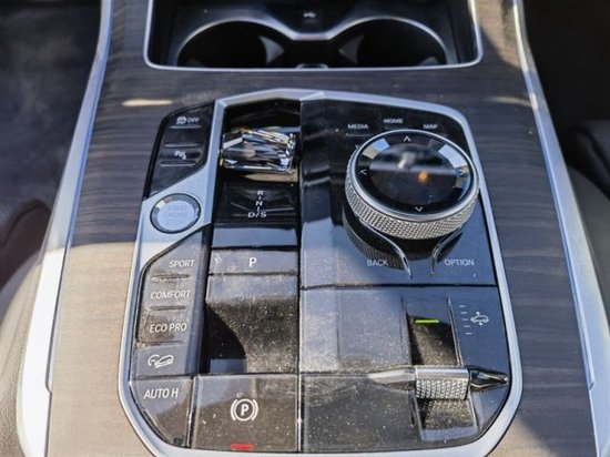宝马X7内饰方面采用最新家族式设计语言使用大量真皮、木纹饰板进行包裹。配备12.3英寸的全液晶仪表和12.3英寸悬浮式触控显示屏。空调出风口与温度显示屏、实体功能按键结合在同一区域并使用银色装饰条进行点缀。下方盖板为带有加热、制冷功能的杯架,全新的水晶电子挡杆造型十分精致,进一步提升了车内的豪华氛围。