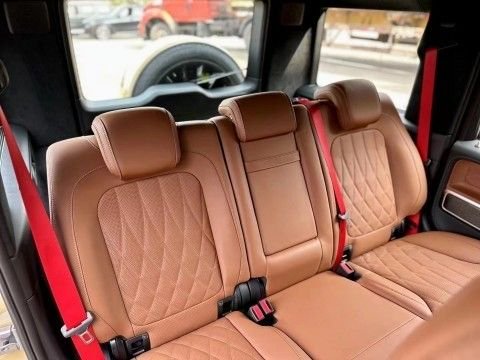 23款奔驰G63的内饰你会被其奢华和精致所折服。高级皮革和精良的工艺细节充满了整个车厢。座椅舒适且提供良好的支撑力,搭配着豪华的皮革包裹和可调节的功能,为驾驶者和乘客带来极致的舒适感受。中控台设计简洁大气,配备了触控屏幕显示系统和仪表盘,提供了先进的科技功能。G63还配备了高品质音响系统、多功能方向盘和全景天窗等,为驾驶者和乘客打造了一个尊贵而舒适的空间。