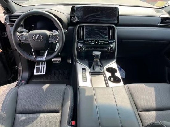 23款雷克萨斯LX500d车内中控在气势的表现很强,采用了悬浮的中控屏幕以及下方规整的中控屏幕,方向盘带有实木的设计,也是提升了豪华气质,在倾斜的中控屏依旧保留了较多的实体按键,后排采用了独立的座椅设计,在豪华感的表现也是非常不错。