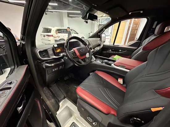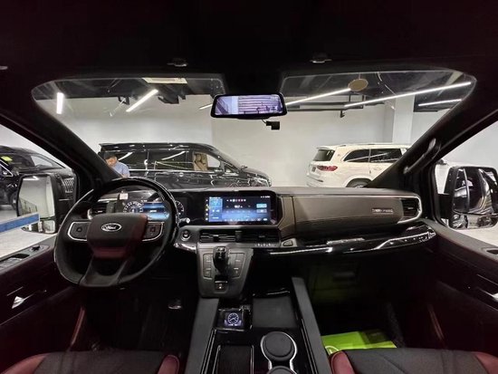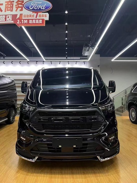 在外观上,福特黑武士沿用的是非常具有运动风的黑武士前后套件,福特大字母中网非常的吸引眼球,。整车尺寸:4974mm/2095mm/1986mm,好停车,能安全下地库,这也解决了很多商务车不能够下地库的痛点。由于福特的前车头比较短小,所以内部的空间就变大,即使车长不超过5米,内部空间在7座商务车中也是非常宽敞的存在。