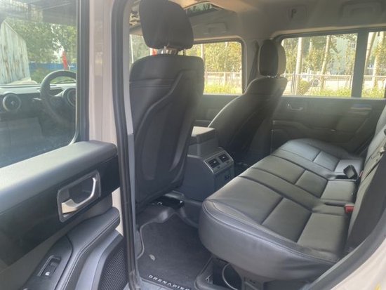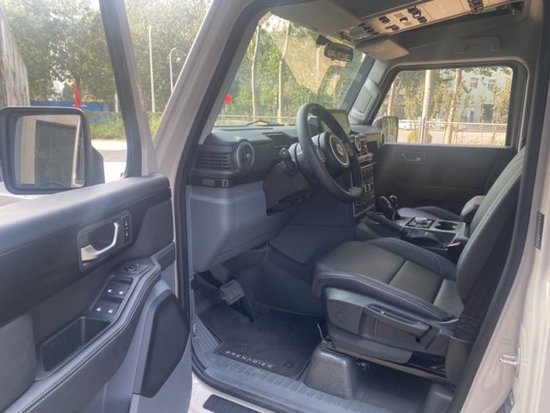 内饰布局:总体延续老款卫士布局,借鉴两幅式方向盘、中控区域长方形出风口(中间嵌入指南针液晶表盘)、机械按键、副驾抓手设计等元素,此外车辆还新增部分越野配置,如副驾A柱抓手等。掷弹兵采用复古机械设计,仪表板两侧设圆形出风口,配备宝马鸡腿电子档杆,其左侧为传统手刹,右侧为分动箱挡杆,手刹旁多功能旋钮则控制不同功能选择(包括选择键、菜单键、返回键、音响键、音频键、越野键,类似宝马多功能旋钮)。