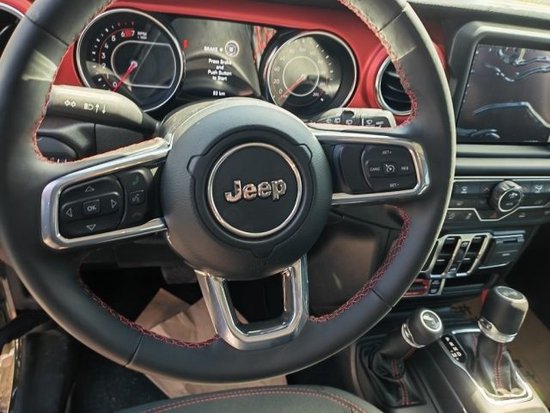 配置:标配:四驱,2.0T,8速,一键启动,红色拖钩(前2+后1),电动加热外后视镜,全尺寸备胎,17寸雪花,轮胎285/70/17,高位轮眉,原车1.5寸升高,黑色硬顶,主驾驶手动8向调节,带锁杂物箱,真皮多功能方向盘,松下8.4寸大屏,UCONNECT 第四代车机系统,越野APP,苹果和安卓手机连接,无钥匙进入,杯垫照明,8扬声器,4个USB接口,前后脚垫,倒车影像,电动车窗,电动门锁,安全警报,自动大灯,后排座椅60/40可折叠,自动空调,4.1后桥比,Rock-Trac双速机械分动箱,Red trail徽章,Rubicon贴