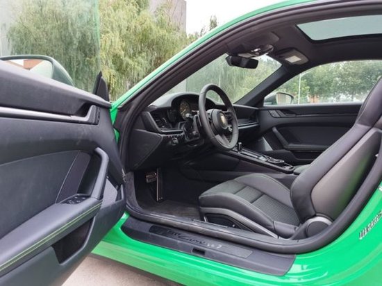 内饰方面,全新911gt3在911carrera的基础上,增加了大量的碳纤维和alcantara内饰,并在不同强度下,制作了包括各种补足材料和补充层。在新车的仪表板下方,还提供了一个巨大的储物空间。车内的各个按钮采用金属铣削铝制和复合材料制成,每个按钮的表面均有750个可选的缝线,为了确保每个旋转的按钮都保持如新的状态,保时捷的工程师还在方向盘后部配备了一个小的按钮。