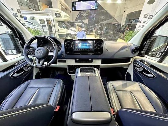 奔驰斯宾特商务车前后舱之间采用隔断化设计,采用了超静音技术,保证您在享受的过程中决不会受到来自外界的任何滋扰。隔断中央有一块可自动升降电视。除了可以欣赏3D、蓝光、DVD影片,播放CD之外,还可以通过它收看32个卫星电视频道,另外,电脑,USB等设备都可以使用这台显示器,功能不可谓不强大